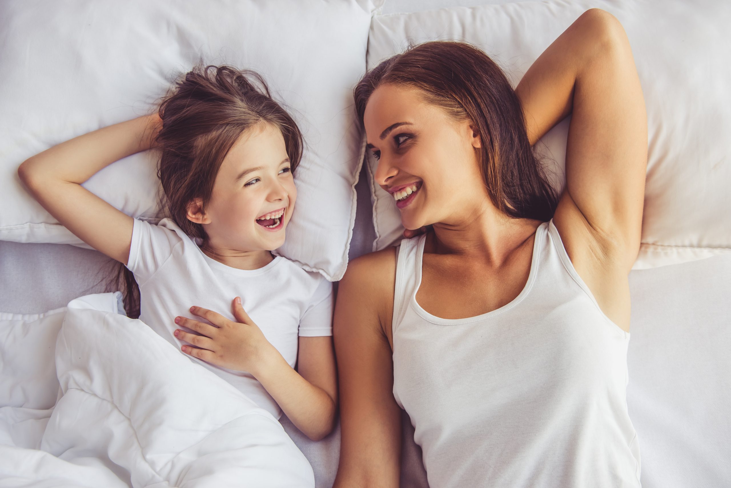 Young woman are smiling while lying in bed at home.
